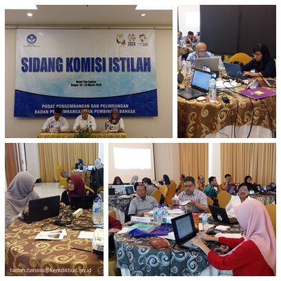 Bogor, Badan Bahasa - Pusat Pengembangan dan Pelindungan, Badan Pengembangan dan Pembinaan Bahasa (Badan Bahasa), Kementerian Pendidikan dan Kebudayaan, melaksanakan kegiatan Sidang Komisi Istilah (SKI) di Hotel The Sahira, Bogor, Jawa Barat, 19—23 Maret 2018. Sidang Komisi Istilah itu merupakan sidang pertama pada 2018. Dalam acara pembukaan Kepala Badan Bahasa, Prof. Dr. Dadang Sunendar, M.Hum, berharap agar istilah dari setiap bidang ilmu yang telah dikumpulkan dan dipadankan dapat disebarluaskan kepada masyarakat. Dr. Hurip Danu Ismadi, M.Pd., Kepala Pusat Pengembangan dan Pelindungan, juga memberikan sambutan seputar pentingnya proses pemadanan istilah asing serta hasil yang dicapai.